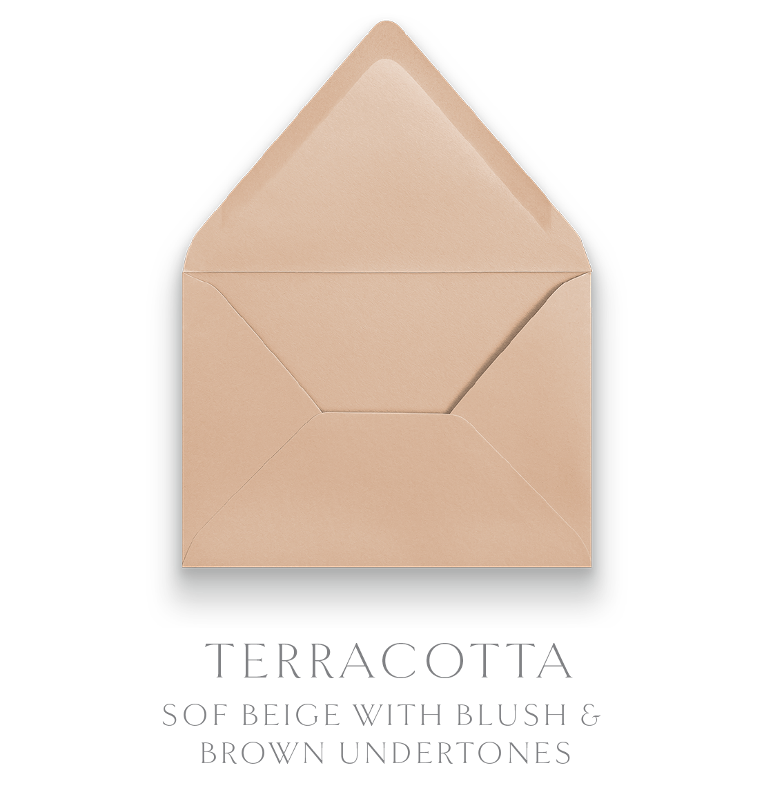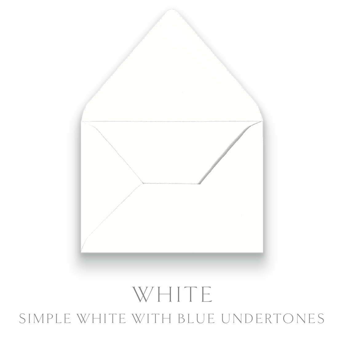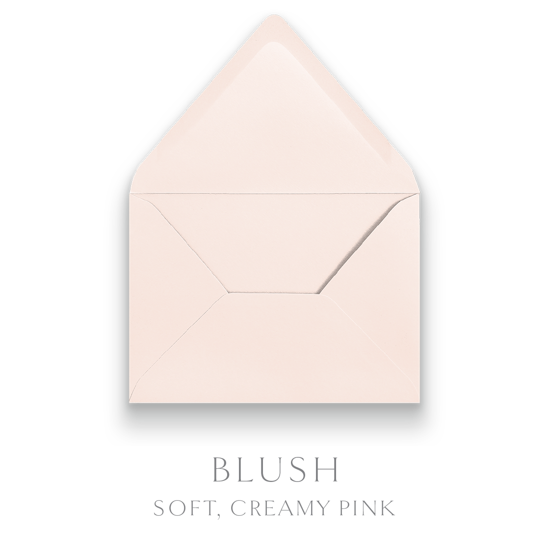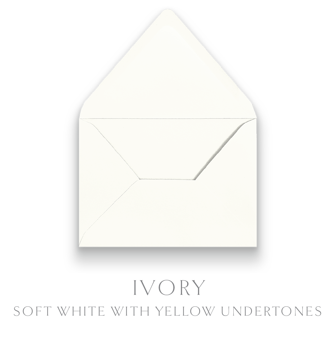 Select from an array of colors to match your wedding palette—if you need guidance, we’re happy to help. Choose classic digital printing or upgrade to letterpress for a refined, luxurious finish. Add an extra touch with envelope liners in beautiful patterns, textures, or bold hues. Elevate your suite even further with wax seals, vellum wraps, silk ribbons, or specialty paper for a polished, sophisticated look.