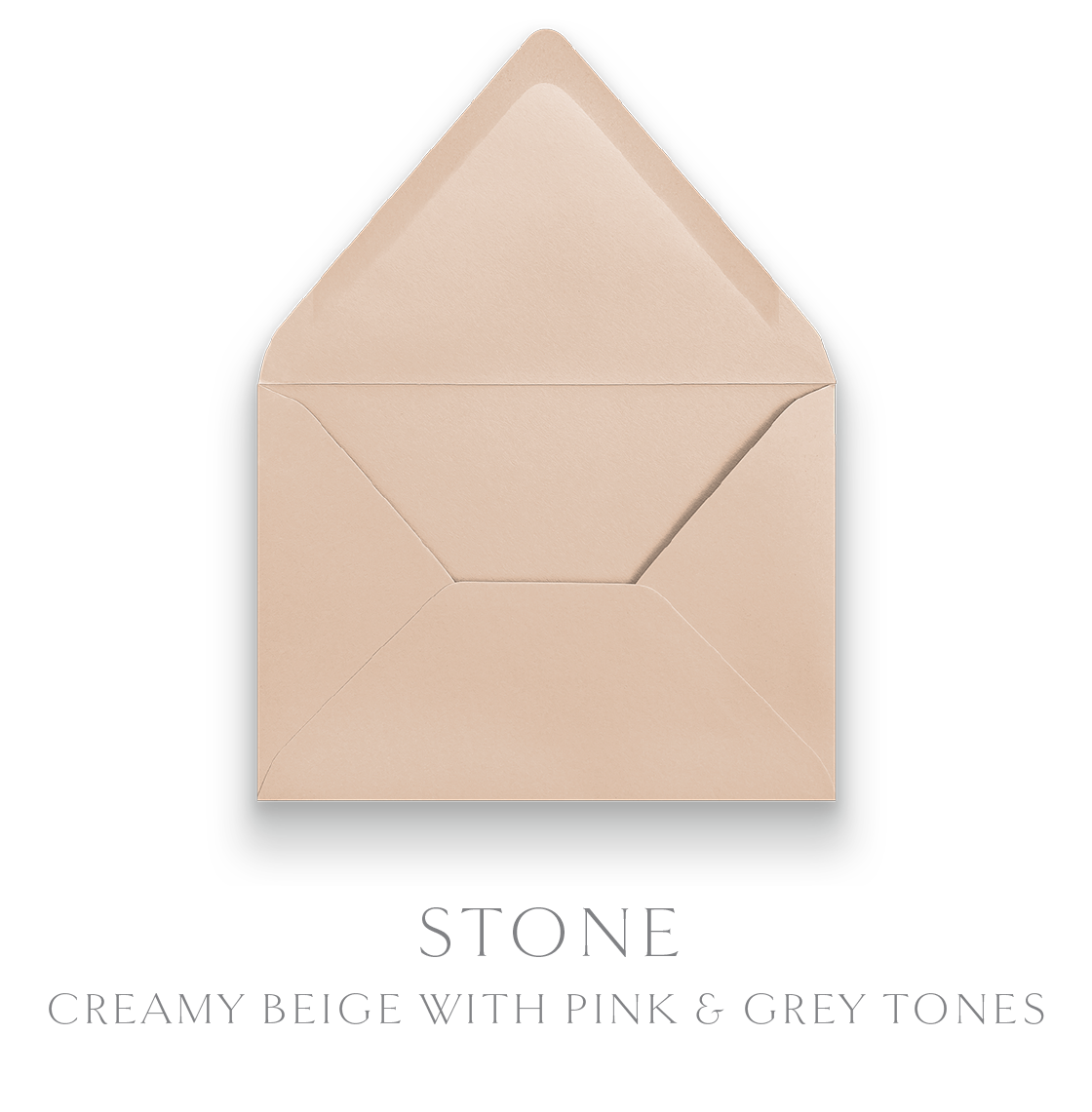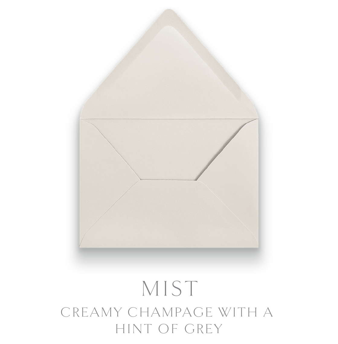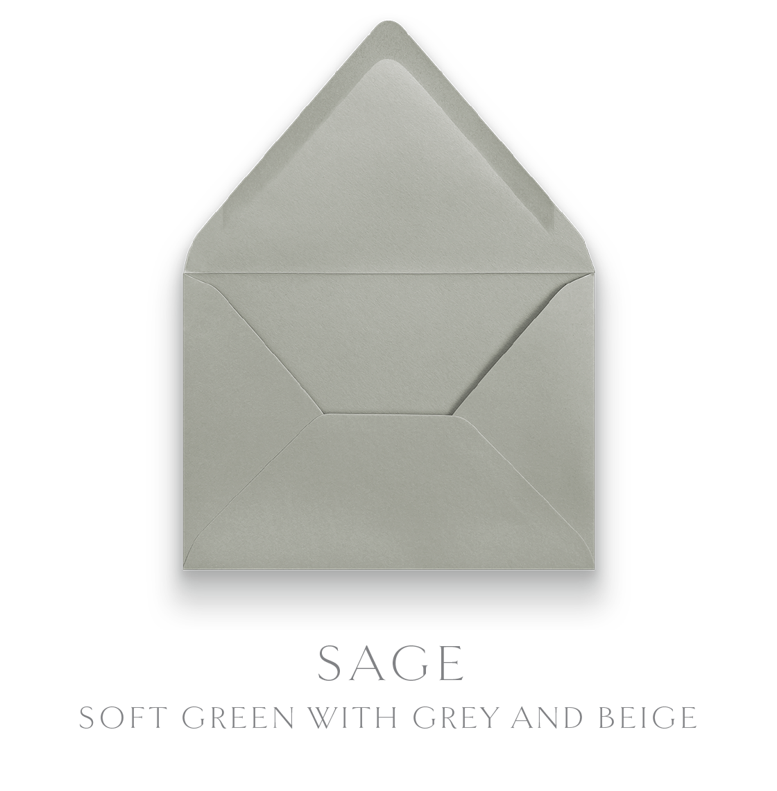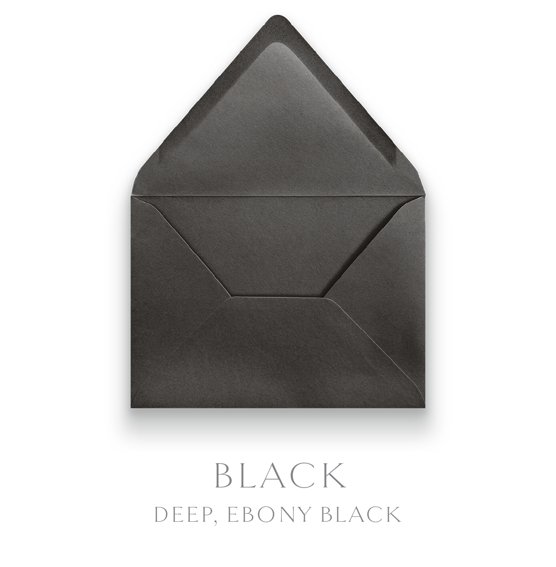 Select from an array of colors to match your wedding palette—if you need guidance, we’re happy to help. Choose classic digital printing or upgrade to letterpress for a refined, luxurious finish. Add an extra touch with envelope liners in beautiful patterns, textures, or bold hues. Elevate your suite even further with wax seals, vellum wraps, silk ribbons, or specialty paper for a polished, sophisticated look.
