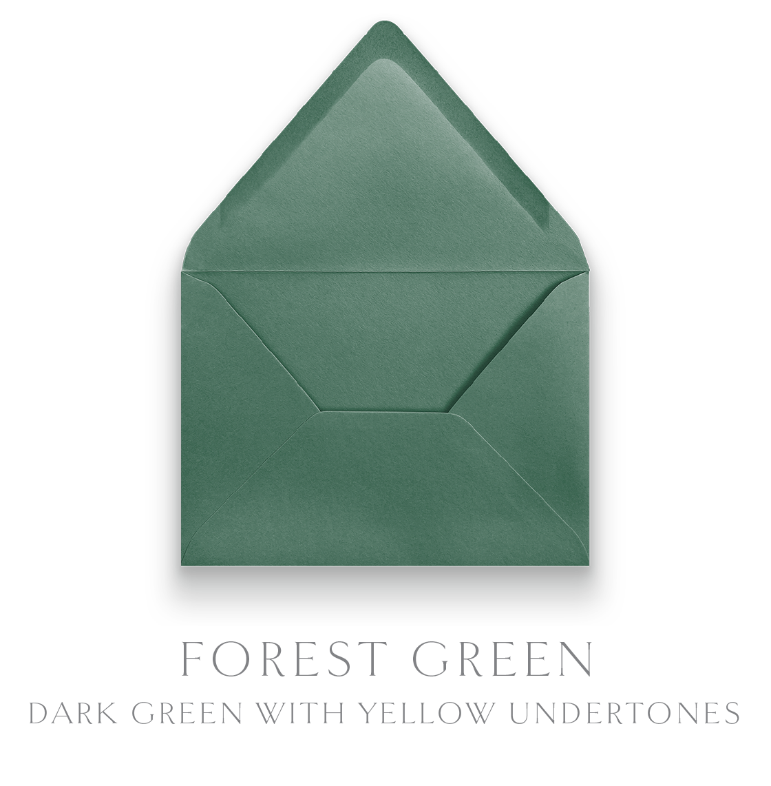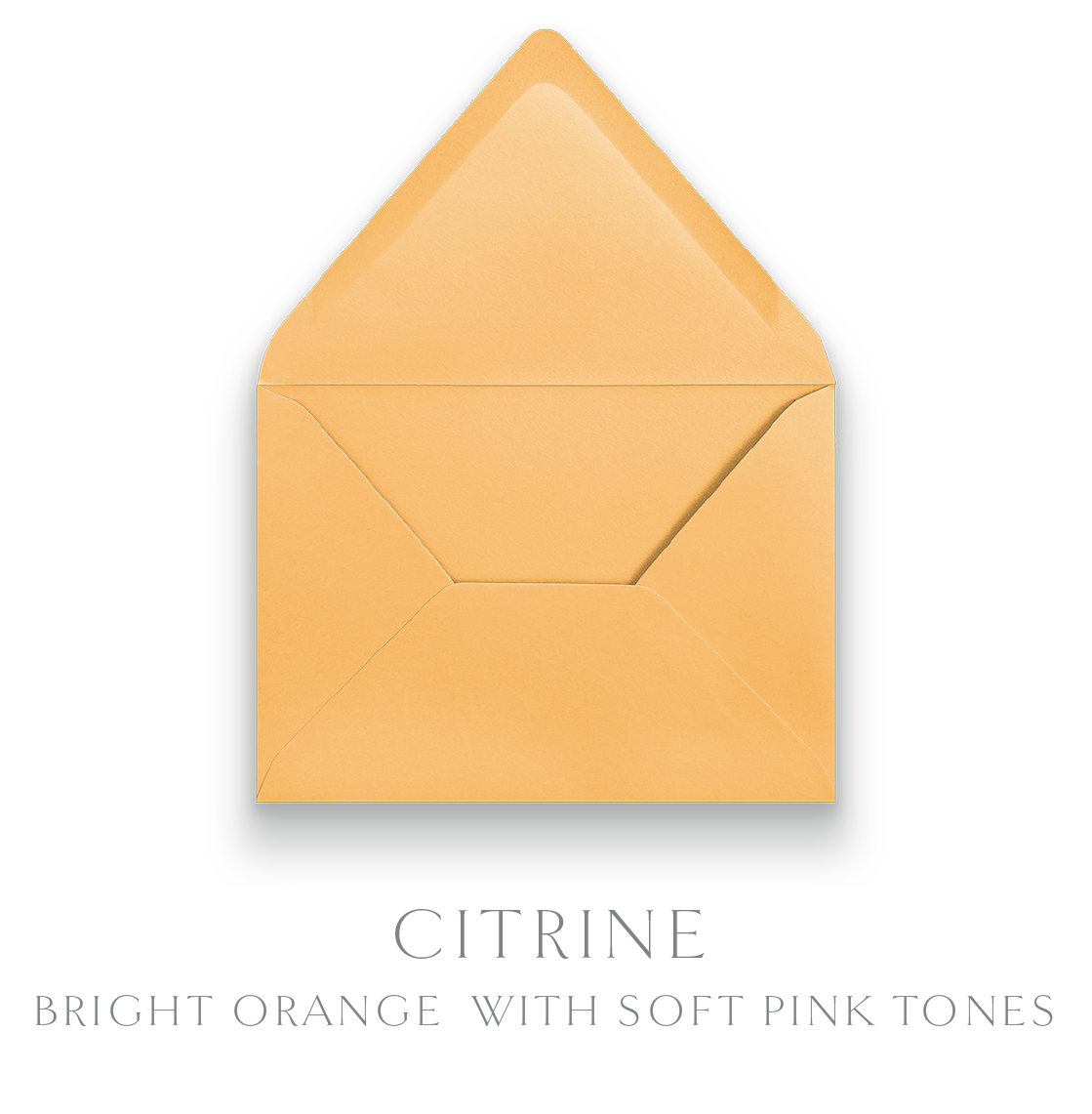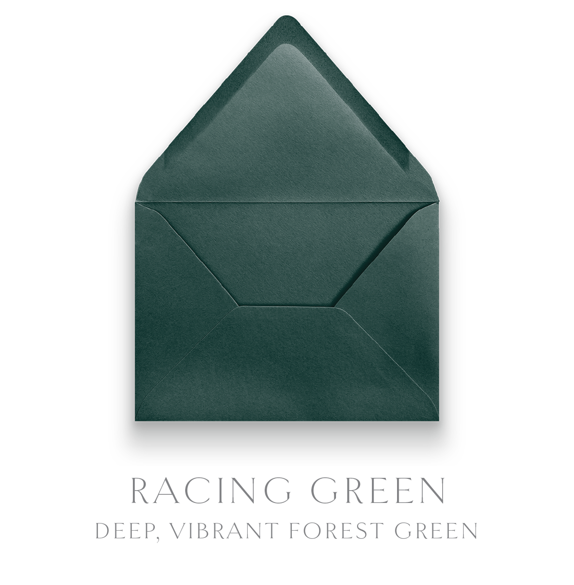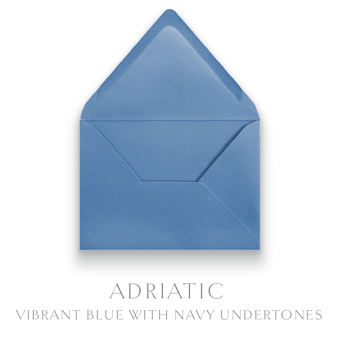 Select from an array of colors to match your wedding palette—if you need guidance, we’re happy to help. Choose classic digital printing or upgrade to letterpress for a refined, luxurious finish. Add an extra touch with envelope liners in beautiful patterns, textures, or bold hues. Elevate your suite even further with wax seals, vellum wraps, silk ribbons, or specialty paper for a polished, sophisticated look.