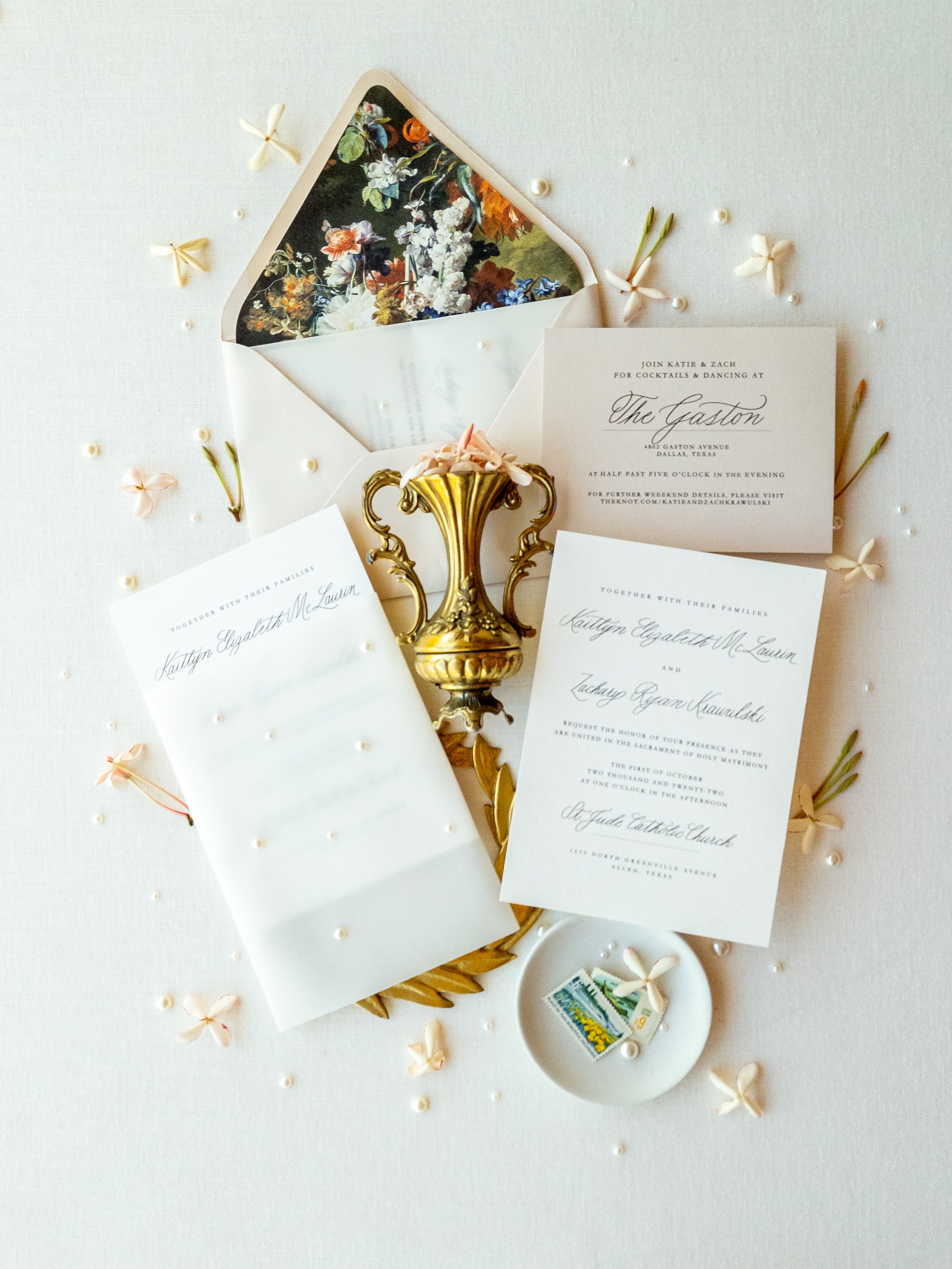 Elevate your invitations with our selection of luxurious enhancements such as wax seals, vintage postage and vellum wraps.